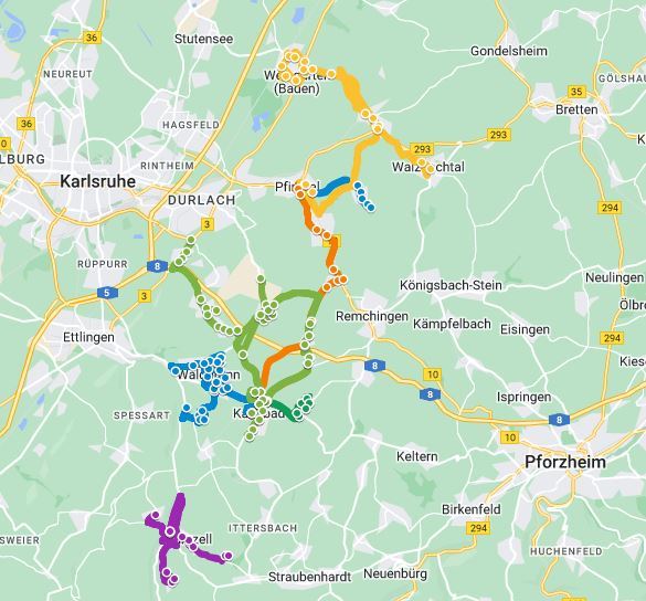 Im Dezember 2021 haben wir den Betrieb der Linien im neu geplanten Linienbündel Pfinztal/Albtal im Landkreis Karlsruhe aufgenommen. Die Linien 151, 152, 153, 154, 155, 158 und 159 bedienen wir gemeinsam mit unserem Partner Richard Eberhardt GmbH. Die Linie 152 führt jetzt von Langensteinbach bis Berghausen und die Linie 159 bedient nun regelmäßig die Strecke Berghausen - Jöhlingen - Weingarten.